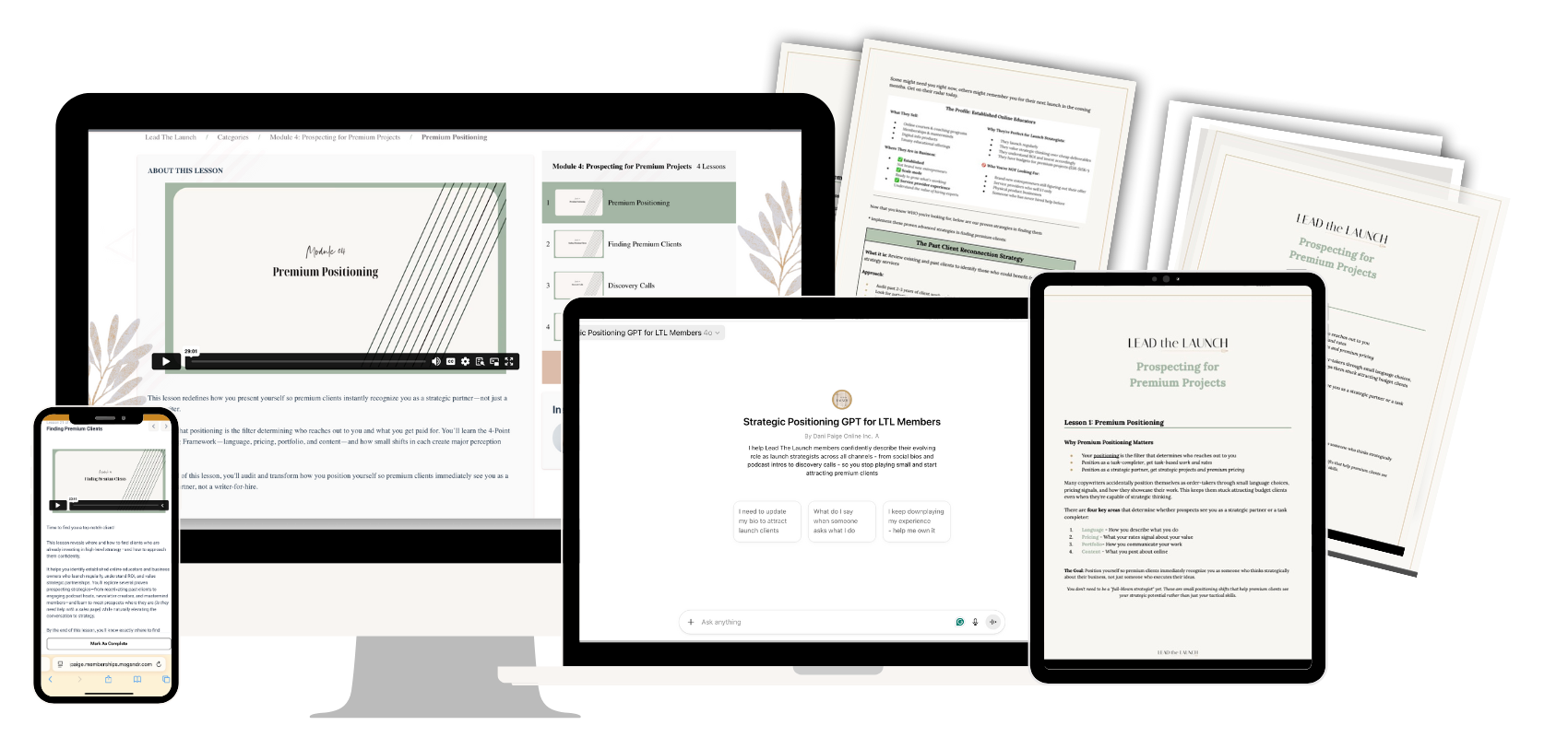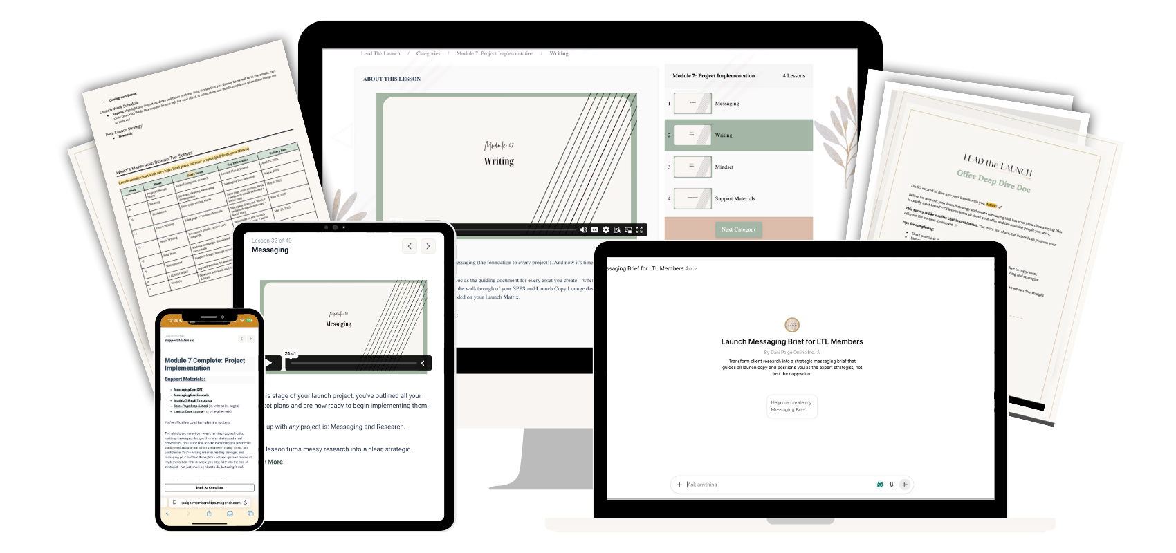 The complete system that transforms mid-level copywriters into highly-paid Launch Strategists — so you stop being “just the writer” and start leading online launches with confidence, systems, and strategic thinking clients pay top dollar for.