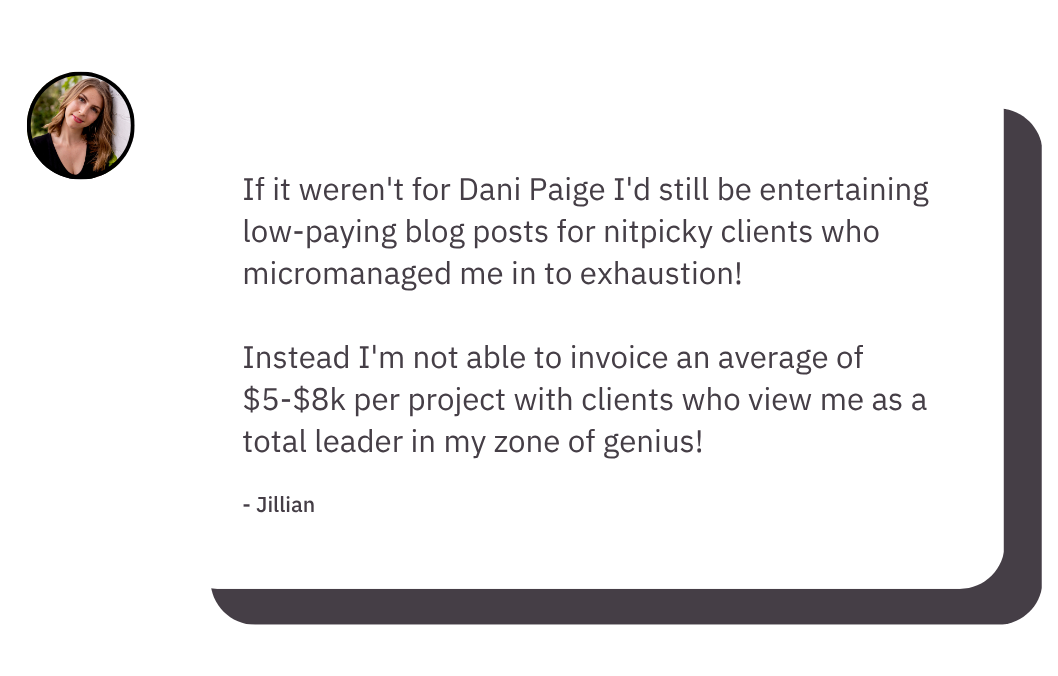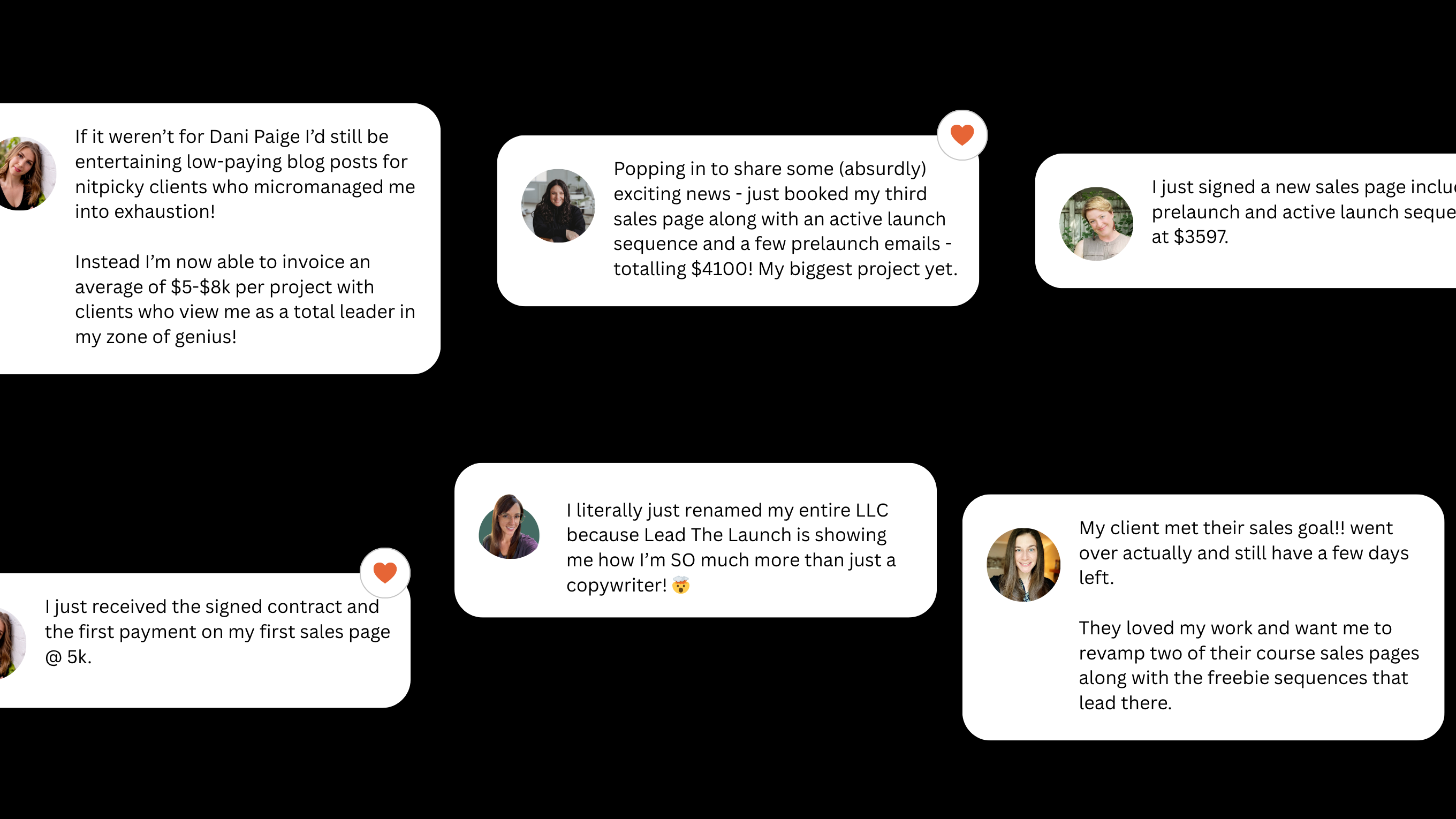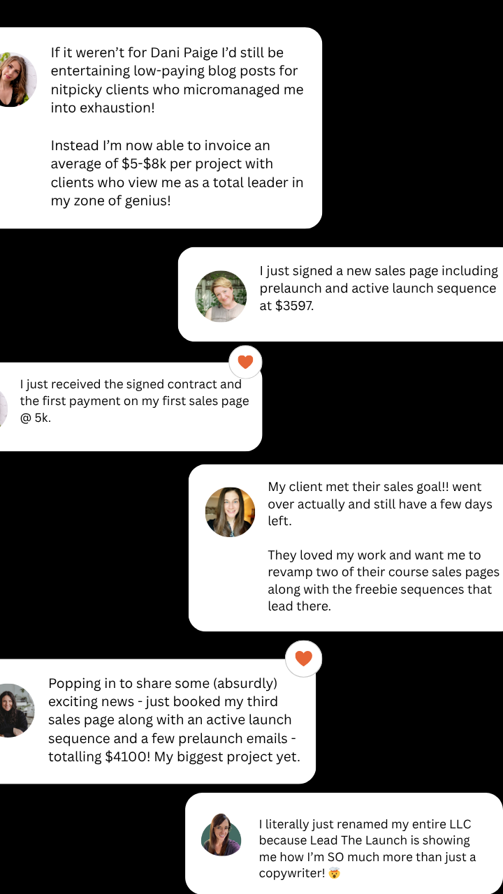 "I went from questioning if I could pivot from copywriter to strategist to feeling 100% confident supporting any client, no matter how complex their launch.