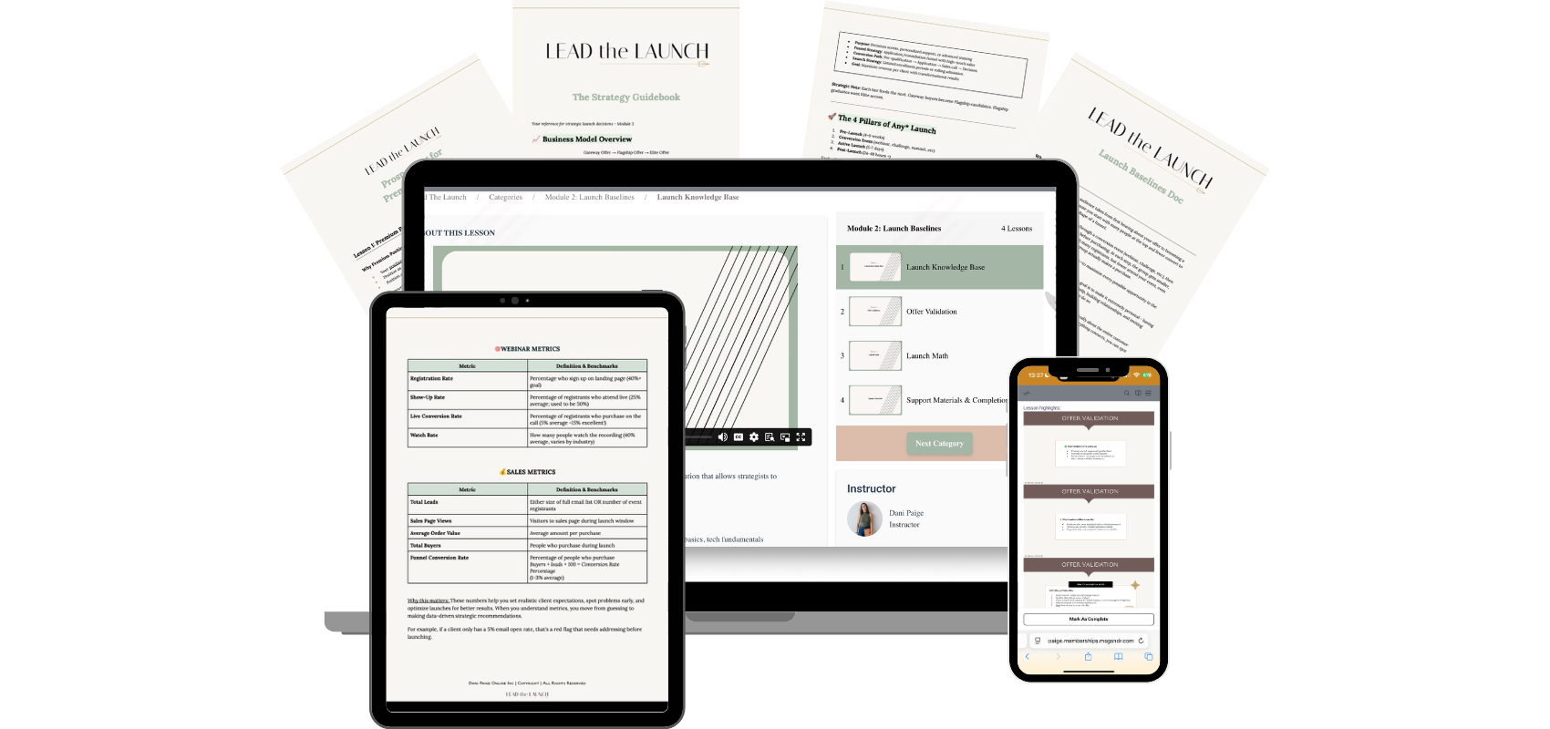 Implementation tool: The Launch Baselines Doc - Your complete guide to launch foundations, funnel systems, key metrics, and tech terms that position you as the knowledgeable strategist clients trust