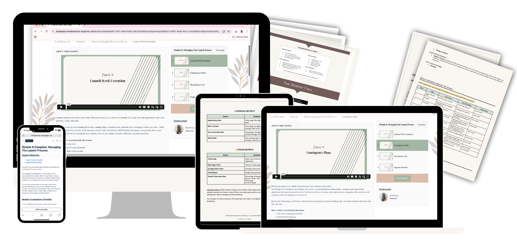 Deeply understand the systems behind every phase of a launch - pre-launch, conversion events, active launch, and post launches so you know exactly what happens when, why it matters, and what to suggest